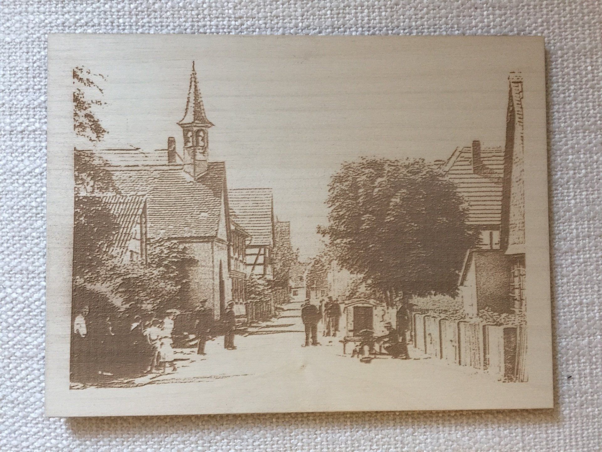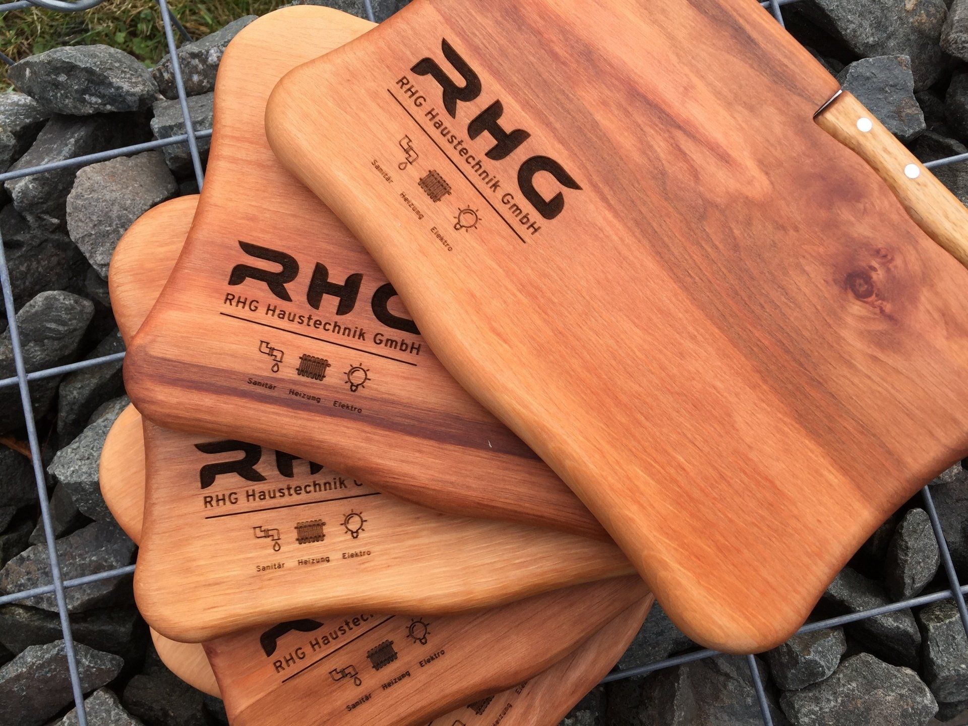 Material: Holz (Bilderrahmen, Werbeschilder, Tischplatten, Thekenfronten, Schneidbretter, Wandverkleidungen, Werbemittel)
